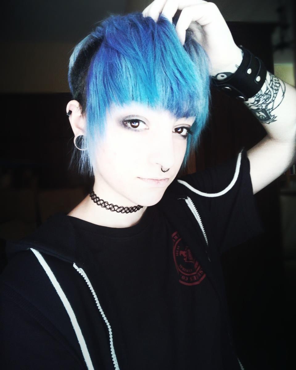 Azul, lo llevo desde hace muchos años, he cambiado de color muchas veces y he probado todos los del arcoíris, pero el azul es el único que he mantenido durante tanto tiempo