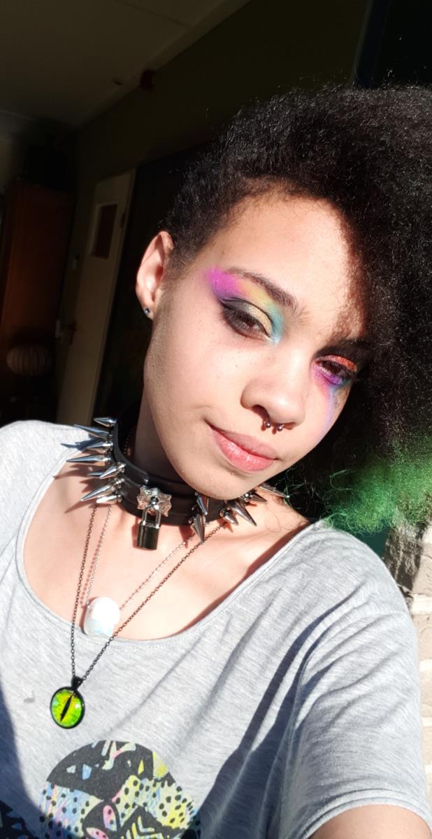 I'm wearing a mix of electric lizards and venus en envy by Manic Panic. First time I dyed my hair I dyed it a dark green so I wanted to try a lighter shade.