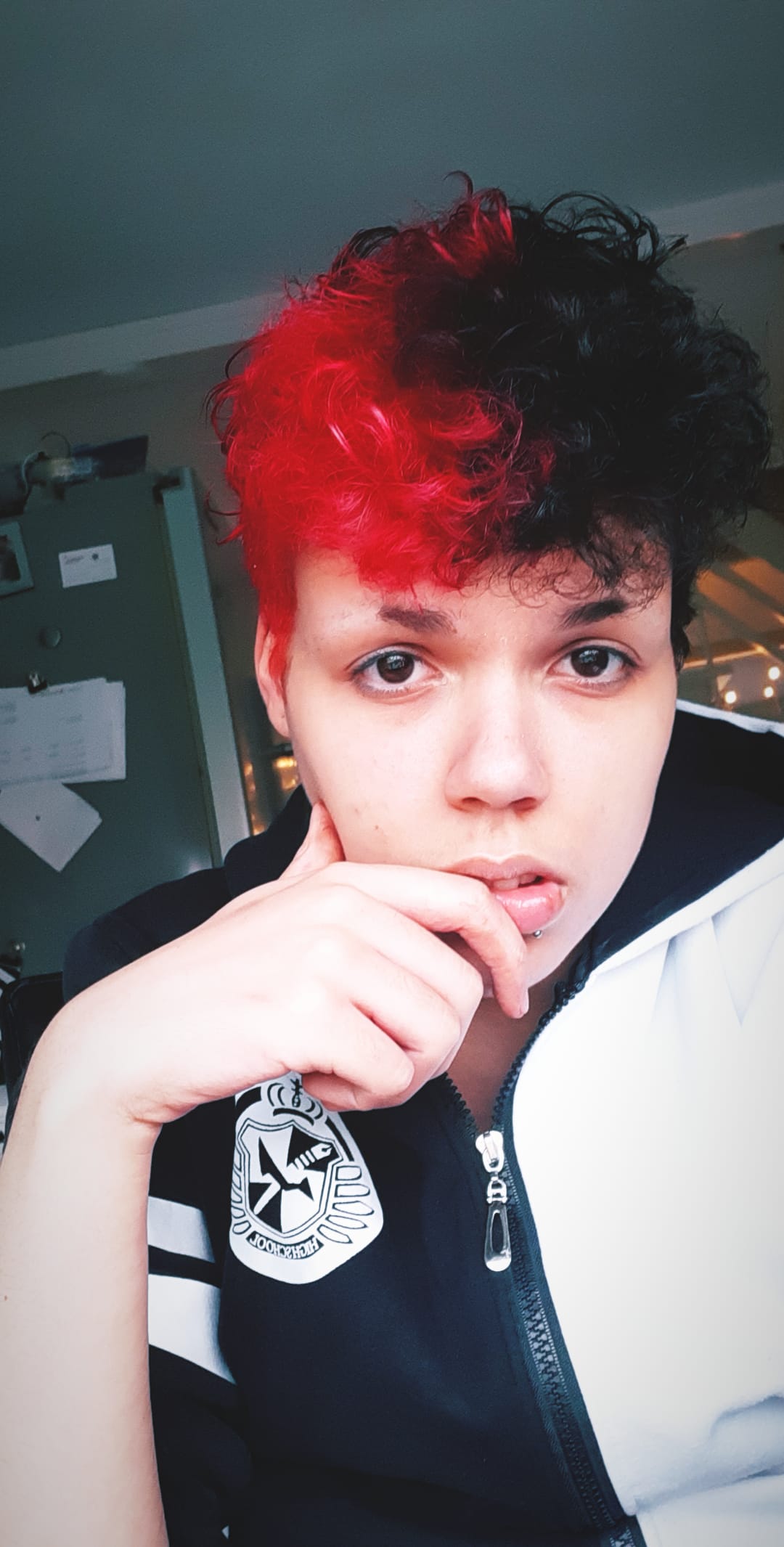 It was green so i bleached half of my hair first for the red