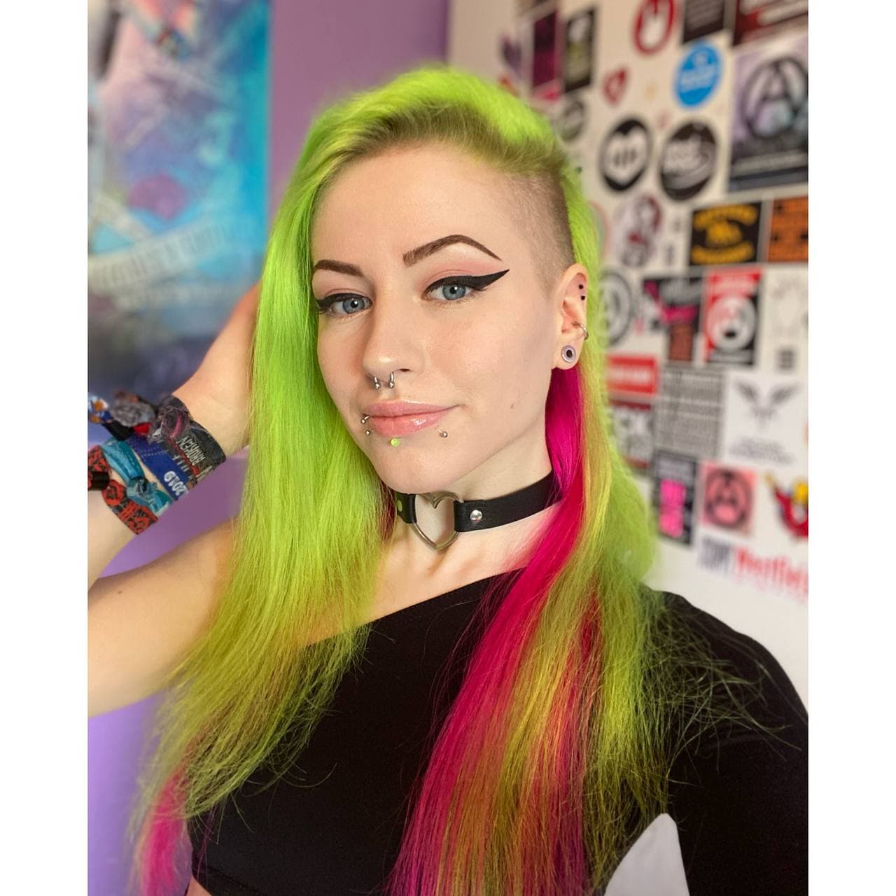The combination of this neon green and pink gives me positive summer and festival vibes, I think it´s a happy color combination. I also love neon green hair, it´s a hair color that isn´t so common to see in real live.