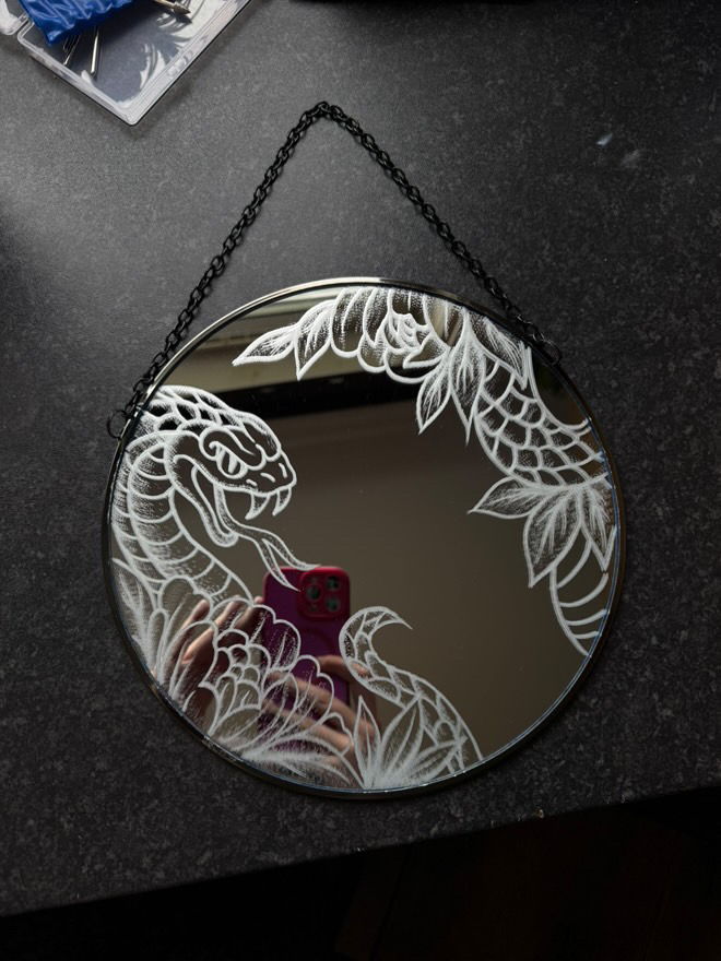I engrave mirrors and homeware items made of glass/mirror