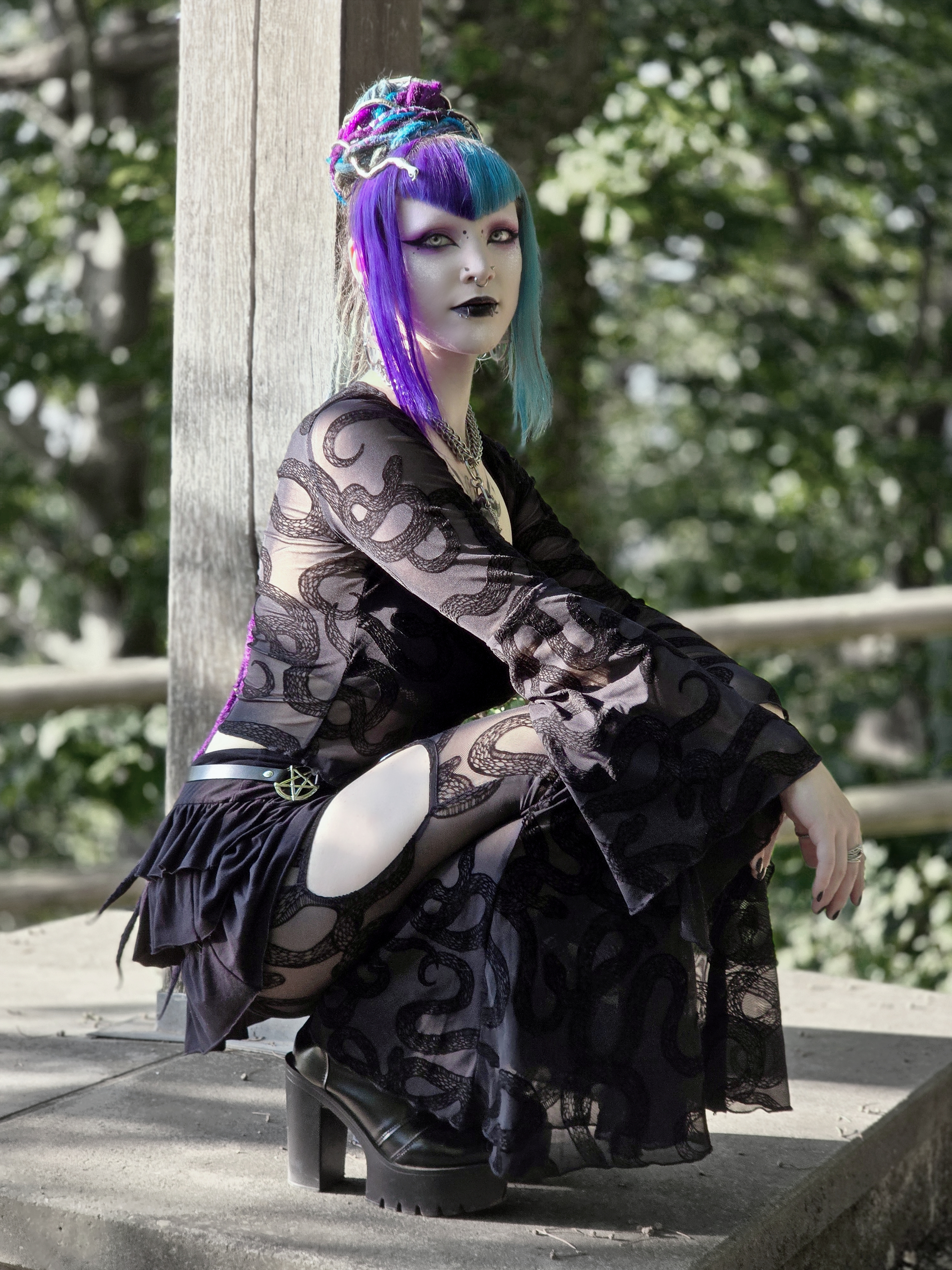 Hii, I'm Quayraza, I am from Germany and love to express myself with cool makeup and fashion looks! I love to try new things and share some inspiration through social media, my aesthetic is a mix of mostly gothic, cybergoth, cyberpunk and dark fantasy/ witchy fashion <3 besides that, I enjoy gaming, photography, hiking/camping/being outdoors and creative craft projects. I also love dancing and I do occasionally dance/ perform on stage ^~^