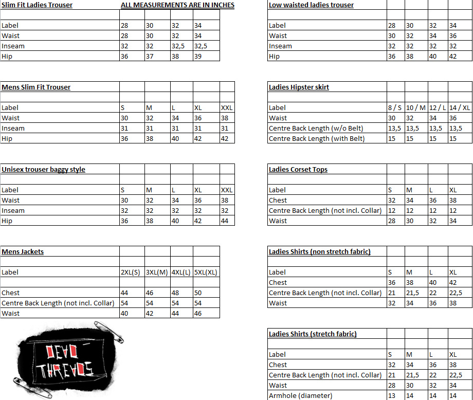 Sizechart Dead Threads